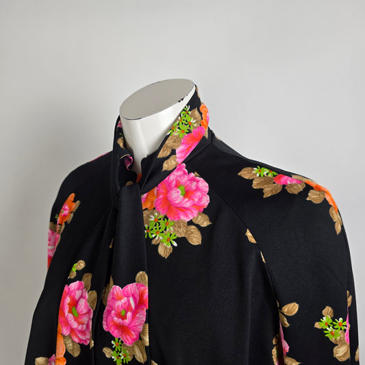 Vintage Bleeker Street Black & Pink Floral Maxi Dress & Cape Size M