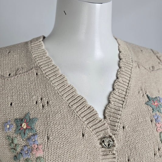 Vintage Northern Reflections Brown Floral Embroidered Button Up Cardigan Size M
