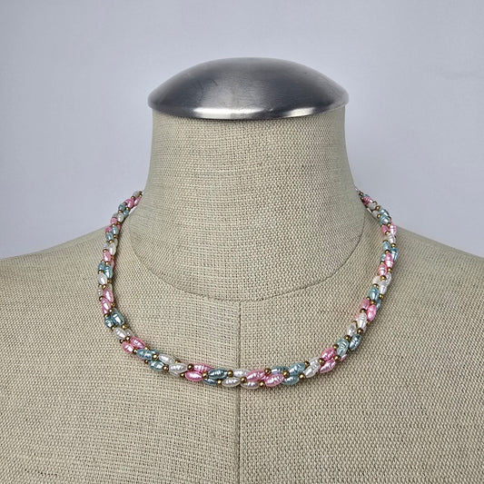 Vintage Colored Pearl Twisted Beaded Sterling Clasp Necklace and Earring Set
