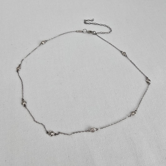 PAJ 925 Sterling Silver Bezel Set Crystal Chain Necklace