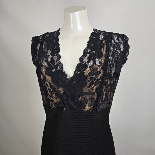 Attitude Black & Nude Lace Overlay Fit & Flare Skirt Dress Size 12