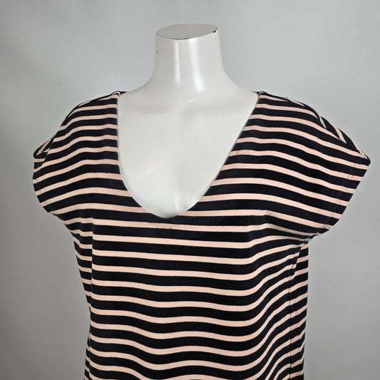 Tory Burch Cream & Black Stripped Cotton Shirt Dress Size XL