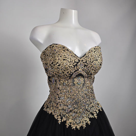 Alyce Paris Black Gold Beaded Ball Gown Strapless Formal Prom Dress Size 12