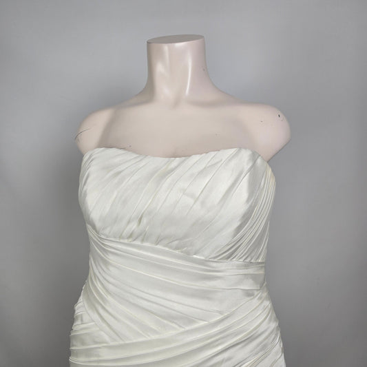 White Strapless Wedding Dress Ruched Satin Bridal Gown Train Size L/XL