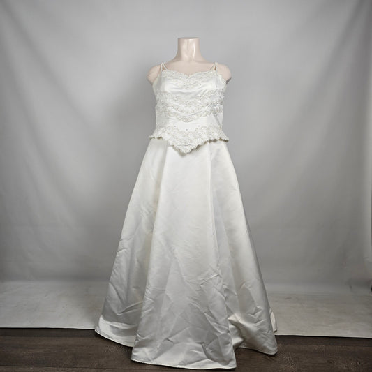 Sincerity Bridal Wedding Dress White Satin Lace Appliqué Ball Gown Train Size 20
