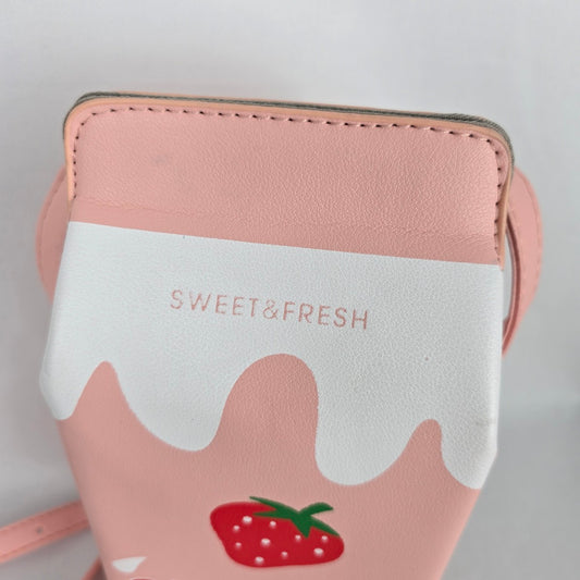 Strawberry Milk Carton Crossbody Bag Kawaii Pink Novelty Purse Y2K Mini Bag