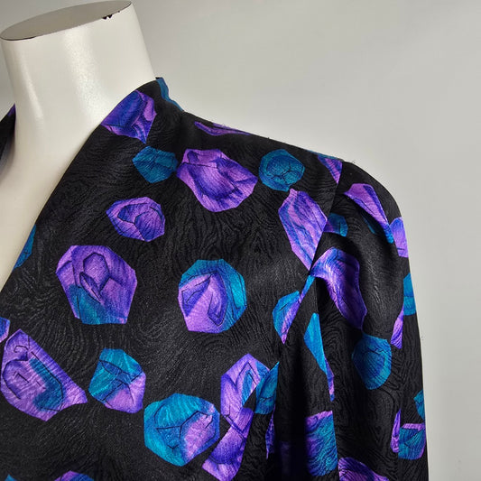 Vintage Nu Mode Blue Crystal Print Blazer Jacket Size M/L