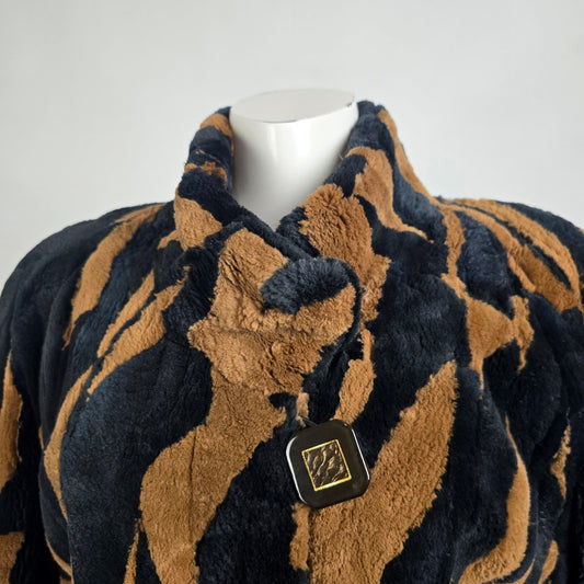 Vintage Stone Furs Black & Brown Faux Fur Coat Size L