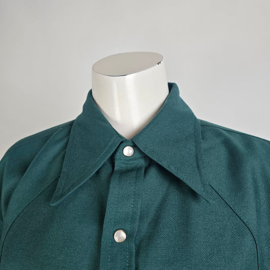 Calberta Western Pearl Snap Size L/XL Green Long Sleeve Vintage Canada Made