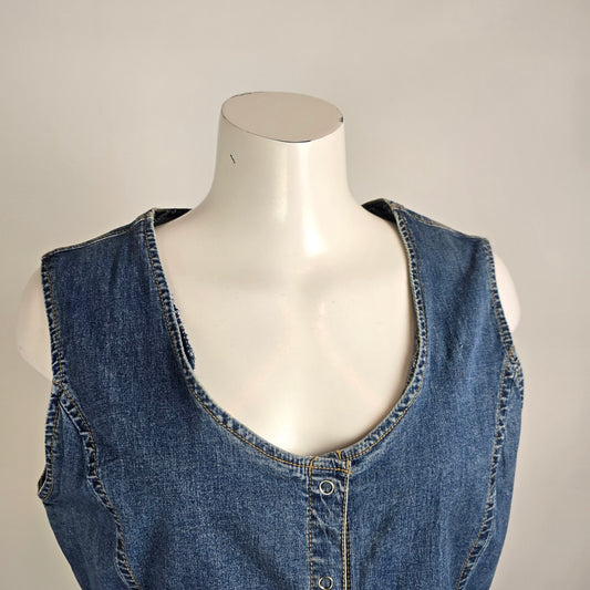 Vintage Y2k Cotton Ginny Denim Vest Size M Snap Front Stretch Jean Top 90s