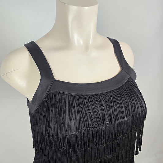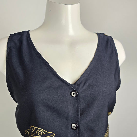 Rima Beachwear Dolphin Print Top Black Tassel Hem Button Front Boho Size M/L