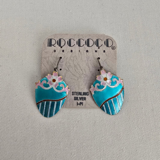 Roccoco 925 Sterling Silver Enamel Flower Earrings