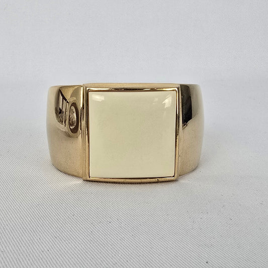 Vintage Avon Gold Tone Cuff Bracelet Wide Chunky Cream Inlay Statement Jewelry