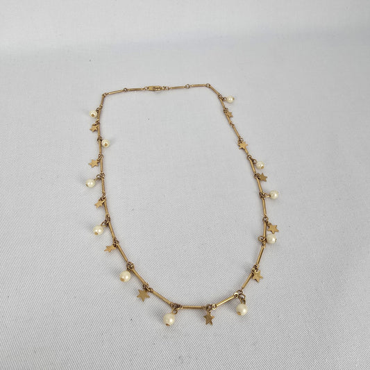Vintage Gold Tone Star Charm Necklace with Faux Pearls Dainty Layering Celestial Jewelry