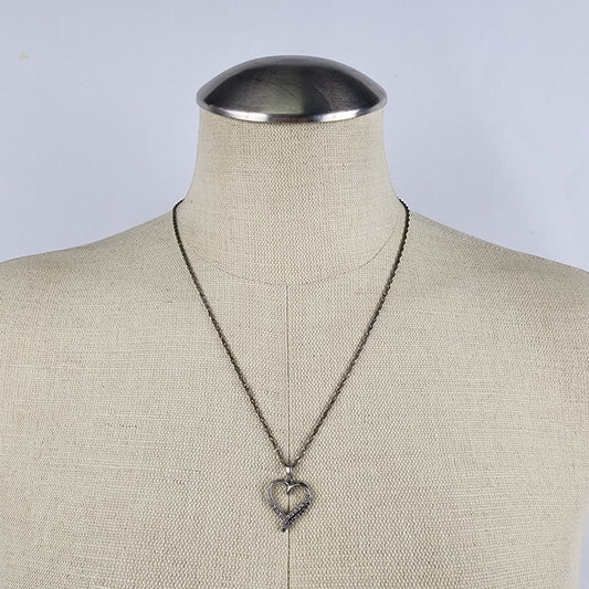 925 Sterling Crystal Stone Heart Pendant Chain Necklace