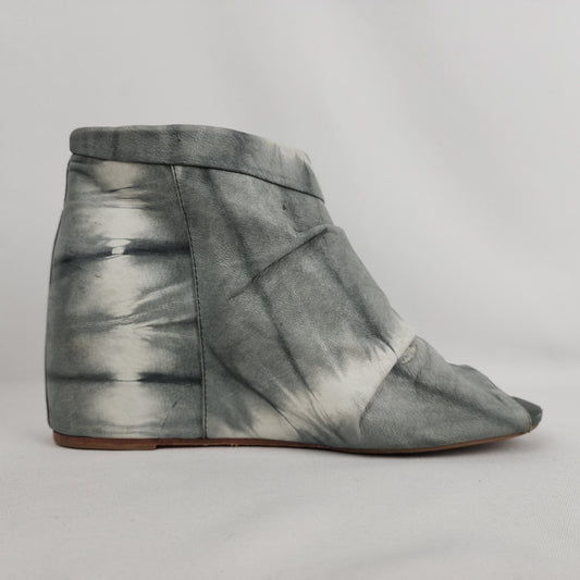 80%20 Grey Tie Dye Leather Peep Toe Wedge Heel Shoes Size 8