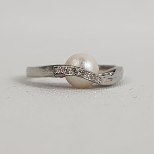10K White Gold Diamond & Pearl Chanel Ring Size 7.5