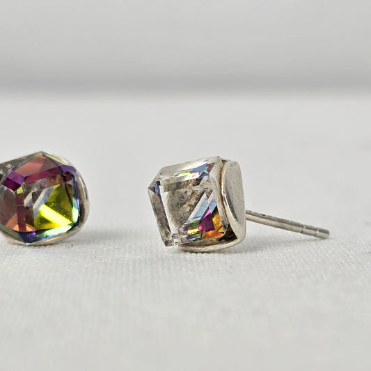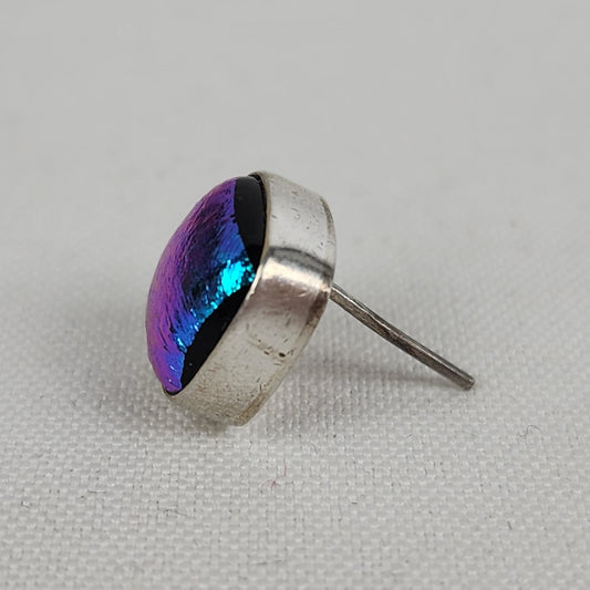 925 Sterling Blue Rainbow Dichroic Glass Post Earrings