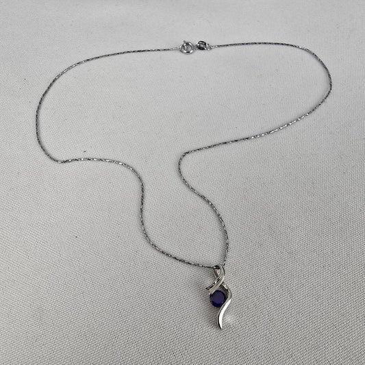 18KGP Silver Tone Blue Gem Stone Delicate Pendant Necklace