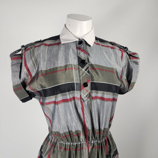Vintage Leslie Fay Grey Plaid Collared Midi Dress Size S/M