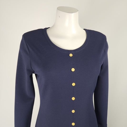 Vintage Fair Set Navy Blue Gold Button Midi Dress Size 6