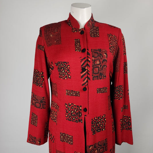 Vintage Jessica Red Button Up Long Blazer Jacket Size 8