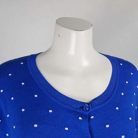 Blue Polka Dot Knit Button Up Cardigan Size L