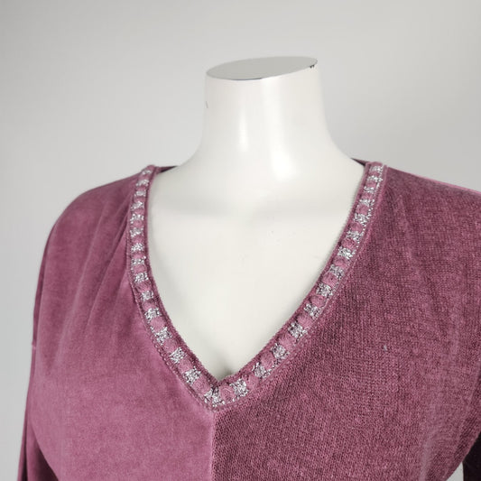 Made In Italy Purple Cotton Sequined Detail Top Blouse Size M/L