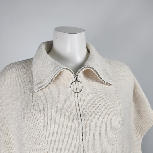 Cream Knit Quarter Zip Poncho Cardigan Size L/XL