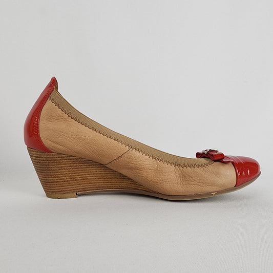 Hispanitas Brown & Red Leather Wedge Heel Shoes Size 9