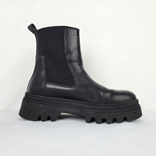 Simons Black Leather Lug Sole Chelsea Boots Size 8