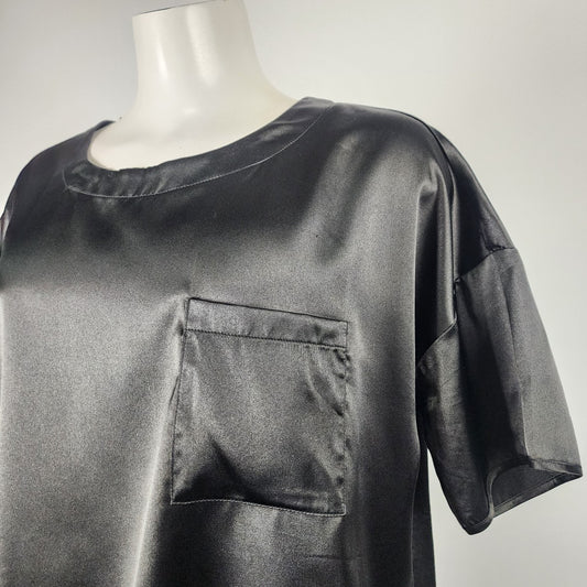 Ekouaer Black Satin Short Sleeve Top Size SRegular price $22.00 CADRegular priceUnit price / per-