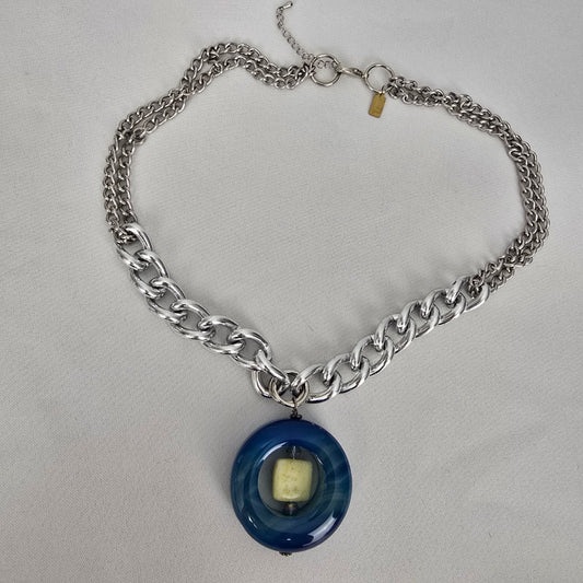 Elvira Silver Tone Chunky Chain Polished Natural Stone Pendant NecklaceRegular price $20.00 CADRegular priceUnit price / per-