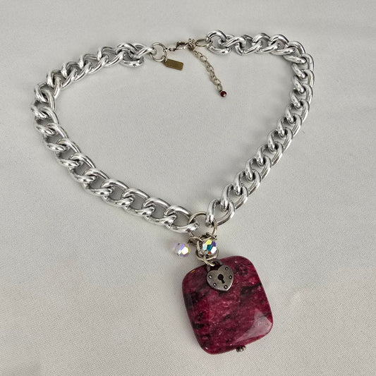 Elvira Silver Tone Chunky Chain Red Polished Natural Stone Pendant NecklaceRegular price $20.00 CADRegular priceUnit price / per-