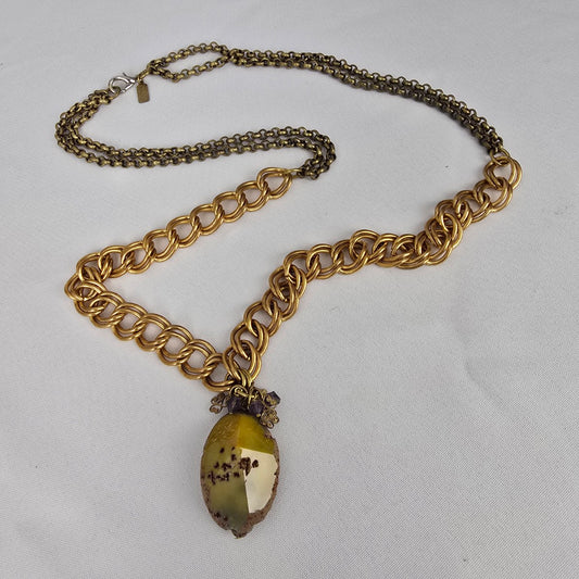 Elvira Gold Chunky Chain Green Polished Stone Pendant Long NecklaceRegular price $28.00 CADRegular priceUnit price / per-