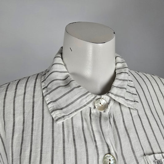 Elissia Made In Italy Linen White Pin Stripped Asymmetrical Button Up Blouse Size MRegular price $26.00 CADRegular priceUnit price / per-