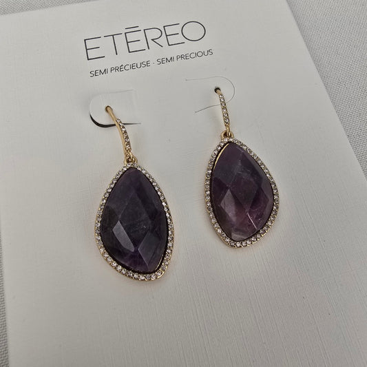 Etereo Gold Tone Semi Precious Faceted Amethyst Drop EarringsRegular price $20.00 CADRegular priceUnit price / per-