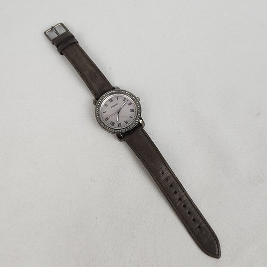 Fossil Mother of Pearl Roman Crystal Bezel Grey Leather Band WatchRegular price $36.00 CADRegular priceUnit price / per-