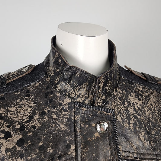 H&D Brown Leather Denim Motto Jacket Size MRegular price $34.00 CADRegular priceUnit price / per-