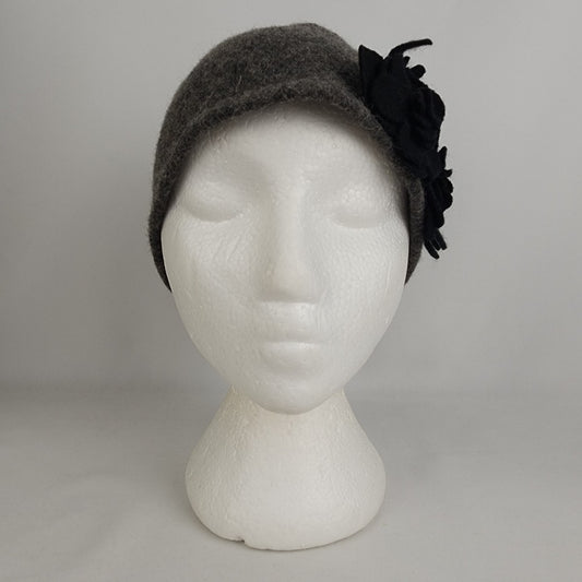 Grey & Black Floral Detail Cloche Felt Wool HatRegular price $22.00 CADRegular priceUnit price / per-