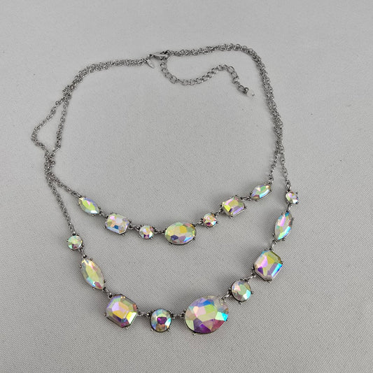 A&C Silver Tone Necklace with Black Faceted Stones - Statement Jewelry