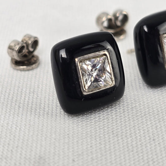 925 Sterling Silver Square Black Enamel Stud Earrings