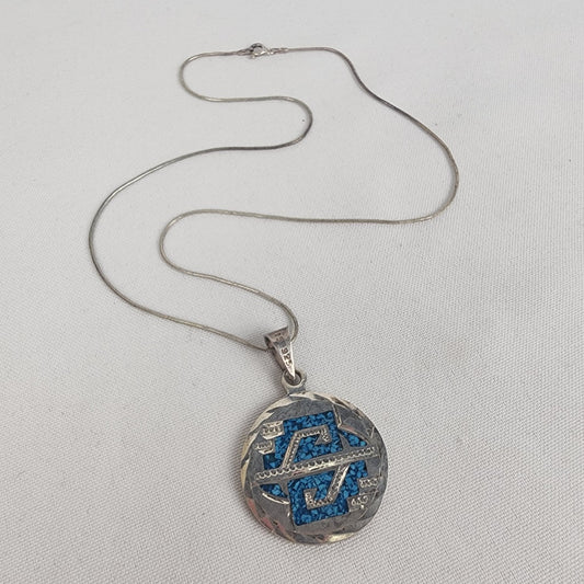 Mexico 925 Sterling Silver Aztec Turquoise Pendant Chain Necklace