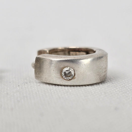 Matt Silver CZ Stone Huggie Hoop Earrings