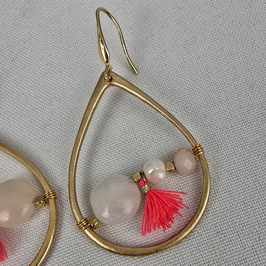 Matt Gold & Pink Natural Stone Fringe Drop Earrings