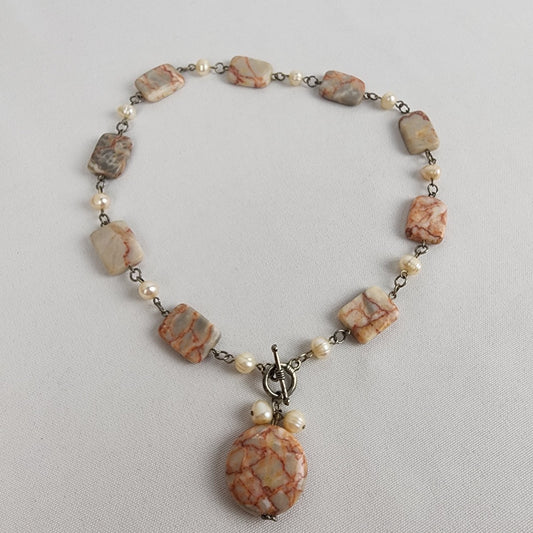 Red Glass Flower Pendant Chain Beaded Necklace & Earring Set