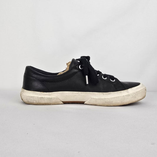 Ralph Lauren Black Leather Lace Up Sneakers Size 7