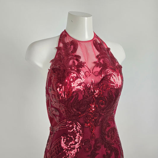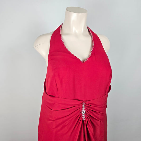 Red Beaded Halter Neckline Event Gown Size 2XL