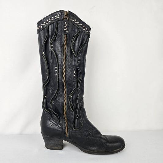 Sheridan Mia Anthropologie Black Leather Studded Cowboy Boots Size 9