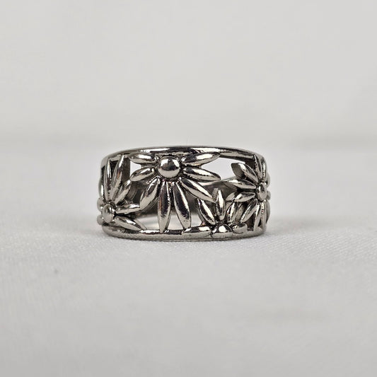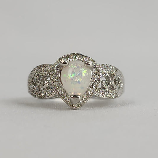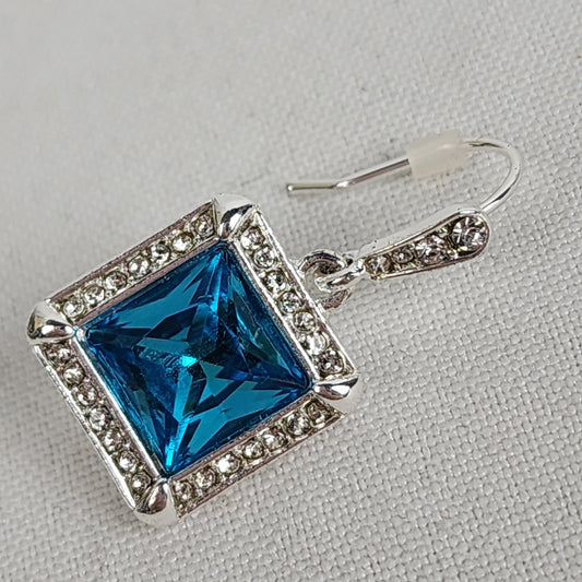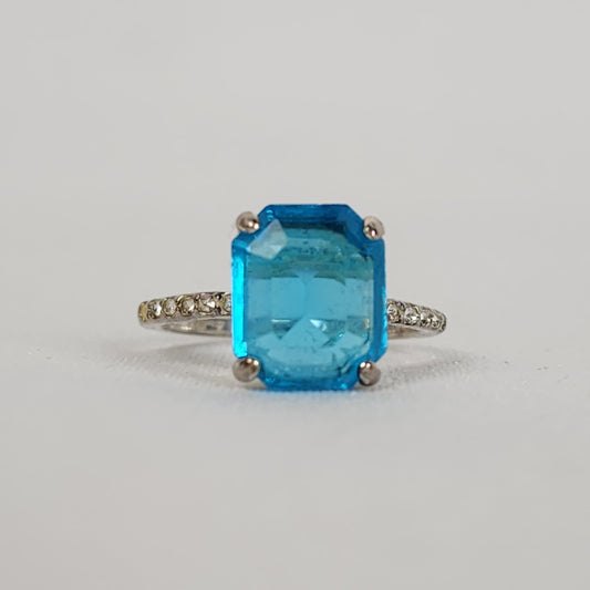 Silver Tone Blue Square Crystal Stone Ring Size 8.5